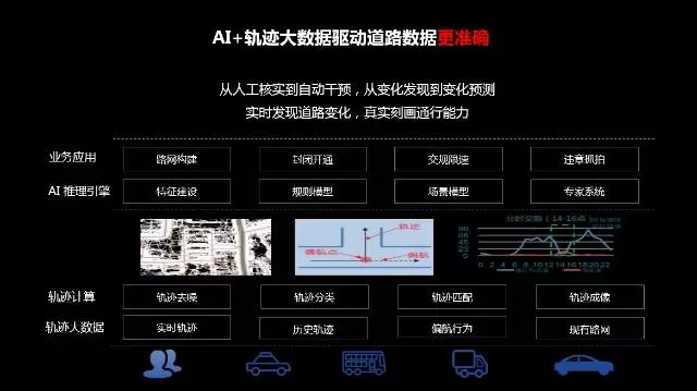 道路数据准确性方面,百度地图从轨迹大数据中提取现实世界的道路通行能力,通过对各类交通运输工具等所产生的轨迹大数据与现有路网建立映射,并综合分析轨迹数量升降、速度变化、导航偏航绕路行为,AI推理引擎,能够构建出更加准确、实时的路况信息。