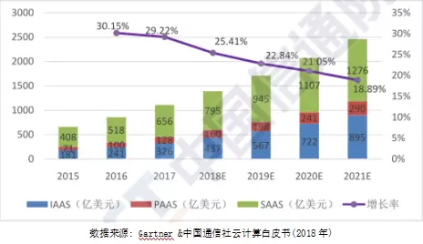 数据来源: Gartner &中国通信社云计算白皮书(2018年)