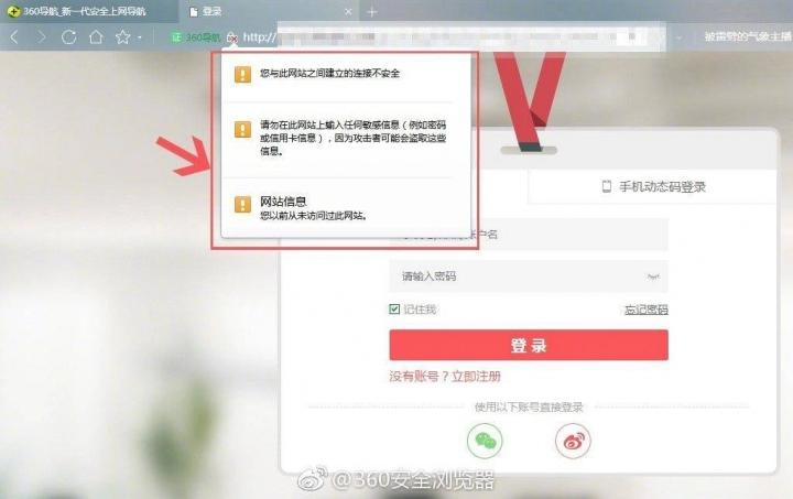 360 浏览器通过红色锁头和弹出式提醒标记当前 http 网站不安全