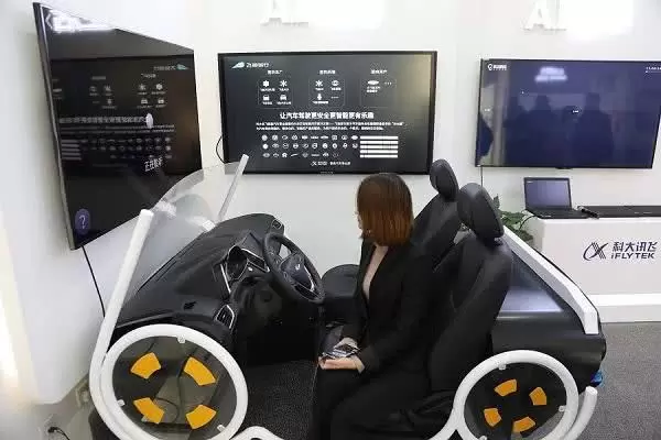 图为科大讯飞通过语音识别技术,使驾驶变得更加方便,使用者可以在车上用聊天的语气,轻松给机器“下命令”,可以接打电话,收听到想要听的电台等等。(谢明 摄)