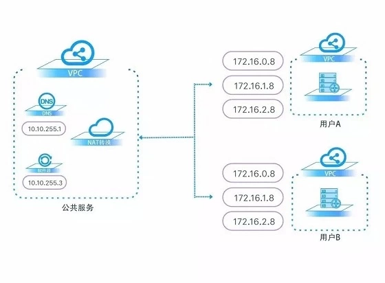 其次是VPC(Virtual Private Cloud)的能力,VPC可以允许不同租户甚至同一租户的网络地址重叠,但广播域保持独立,也就是说用户可以通过VPC在公有云上隔离出一个自己的专有网络,从而实现不同业务的隔离部署。