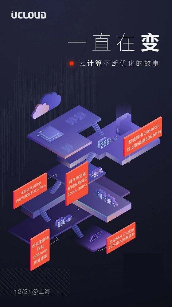 关于下一代虚拟网络的更多问题,12月21日UCloud用户大会暨Think in Cloud 2018上海站的“产品与技术专场”将会带来更加详细的技术解析。此外,UCloud副总裁杨镭还将分享UCloud极简产品的设计理念、下一代计算以及全球基础设施建设等前沿技术话题的深度剖析。