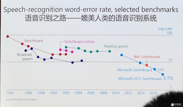 2、2017年8月20日,微软首席语音科学家黄学东宣布微软语音识别系统继微软对话语音识别技术达至人类专业水平,开启人工智能新征程之后再次取得重大突破,错误率由5.9%进一步降低到5.1%,可与专业速记员比肩。此次突破大幅刷新原先记录,并在语音识别行业树立新的里程碑。