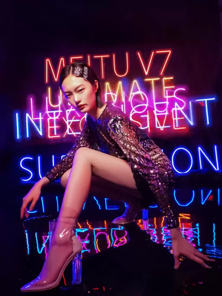早在去年,美图就长于解决夜拍常见的弱光、暗光问题。而在今年美图V7再次突破自我,通过AI在黑暗中捕捉人脸信息,经过一系列的细节重构、精细化美颜、光纤优化等,推出全新的“前置AI夜拍美颜”功能,把“无光拍摄”变为可能,即使全黑环境也能拍出完美人像,全情绽放夜的美。