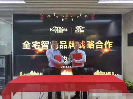 2018年12月14日,深圳卡特加特智能科技有限公司与云玳智能科技(福建)有限公司在京举行全宅智能战略合作协议。双方同意在全宅智能、高端家装设计和品牌建设等方面展开全方面的合作,共同打造并推广【卡特加特】全宅智能品牌。