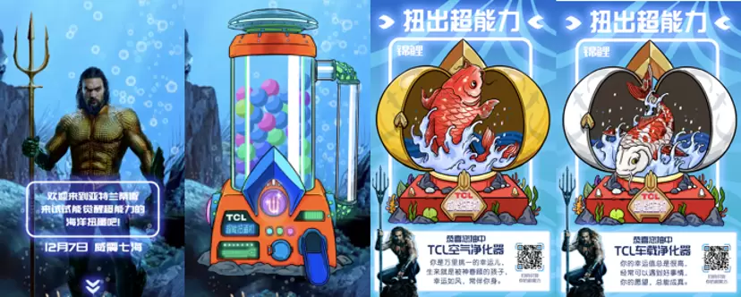 随着支付宝锦鲤“信小呆”横空出世,“锦鲤”不仅成为2018年度热词,更是年轻消费者追逐的超级热点。各大品牌、自媒体KOL纷纷跟进全网抽锦鲤,用接力的方式将热度传递到底,声量集中爆发。TCL洞察到年轻消费者“求好运”的心理,利用大家对超级英雄的兴趣点,通过“解锁海王的超能力”H5,用线上超能扭蛋机在全网掀起集卡狂潮。