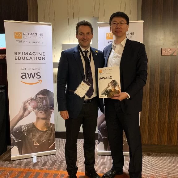 在斩获Reimagine Education大会的殊荣后,首席架构师Richard Tong与大会主办方、英国著名教育组织QS创始人Nunzio Quacquarelli合影