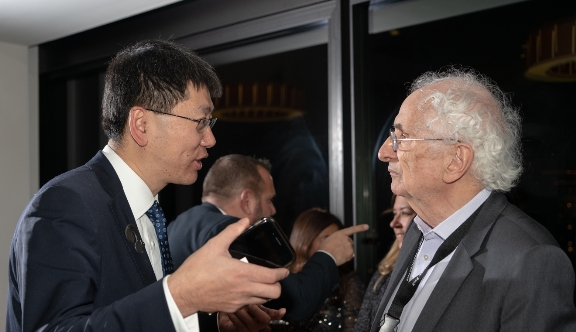 乂学教育松鼠AI首席架构师Richard Tong与Reimagine Education教育大会创始人之一、宾大沃顿商学院著名教授Jerry Wind亲切交谈