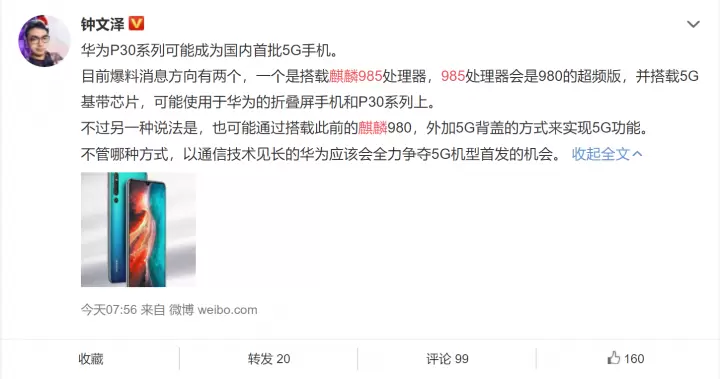 下一代或直接命名为麒麟990而另一位数码博主@i冰宇宙 则分享了自己的看法,他认为传言中的海思麒麟985应该是不存在的,华为已经在着手研发麒麟990芯片了,而麒麟990才是集成5G基带的,真正意义上的5G SoC。