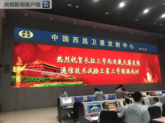 北京时间12月25日00时53分,中国在西昌卫星发射中心用长征三号丙运载火箭,成功将通信技术试验卫星三号发射升空,卫星进入预定轨道。本次发射的通信技术试验卫星三号和长征三号丙运载火箭,均由中国航天科技集团有限公司研制生产,发射、测控任务由中国卫星发射测控系统部负责。