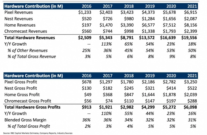 加拿大皇家银行资本市场表示,“鉴于可能成为一个关键的增长领域和战略屏障,硬件业务虽然规模较小,但却是谷歌的一个重要组成部分。”