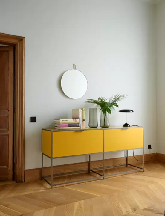 Book&Look于2009年首次亮相,并于2016年重新推出,无论是原材料选择或是功能性都得到了非凡的创新。由Patrick Pagnon & Claude Pelhaître设计的Book&Look餐边柜拥有14种可选择的烤漆颜色,同时增加音响、手机无线充电和USB接口等功能。