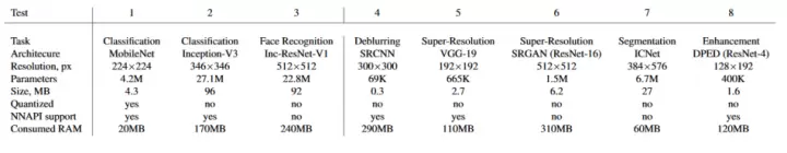 MobileNet-V1神经网络的目标识别/分类对象识别/初始分类-V3神经网络人脸识别图像去模糊基于CPU、NPU、DSP的VG-19神经网络图像超分辨率仅在CPU上的SRGAN神经网络的图像超分辨率语义图像分割照片增强