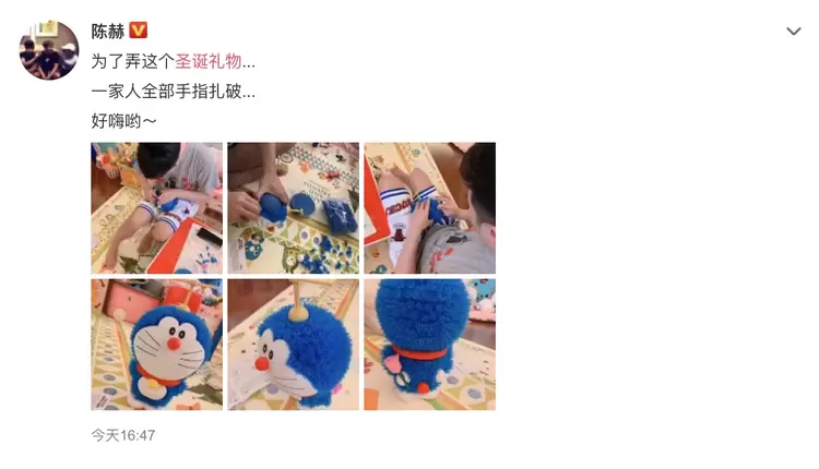 颇具创作才华的方大同选择送给歌迷一首新歌,江一燕独辟蹊径,送的是画风奇特的"花被子",陈赫则一家齐上阵,做了一个相当逼真的哆啦A梦: