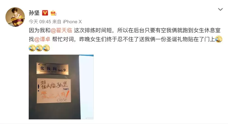 还有混迹其中来"捣乱",给好友送特别大礼的,比如给黄宗泽送了一套大保健的苗侨伟,因为频繁出入女生休息室而被diss"禁止入内"的翟天临和孙坚。