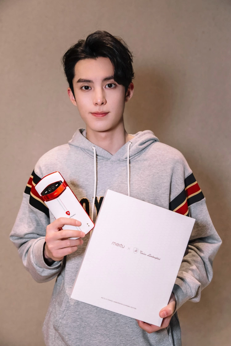 照片中,王鹤棣梳了个偏分造型,显得五官更帅气,轮廓也非常深刻。身上则穿了一件意式风格明显的卫衣,少年感十足,和手里拿的高颜值美图V7x托尼洛·兰博基尼限量版简直不要太搭!
