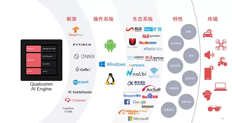 Qualcomm不断拓展生态系统伙伴并与他们建立深度合作,这些合作伙伴正利用Qualcomm的AI平台来打造自己的应用,进而扩展终端的功能。在骁龙技术峰会上,谷歌进行了这样的演示:在难以用语言描述的使用场景中,比如当用户正在线购买难以用语言准确描述的商品时,计算机视觉技术可以大显身手。通过与谷歌的合作,Qualcomm正助力将该技术从云端迁移至终端,从而实现更精确、更低时延和更高的可扩展性。