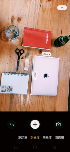 OPPO AR测量提供“测距离”、“测长度”、“测角度”、“测面积”四个子功能