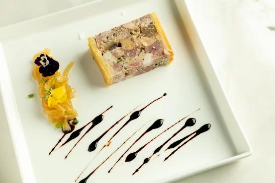 其中,黄大厨最推荐的是鸭肝黑豚肉批和小葱慢煮蜗牛黑毛猪蹄两款菜品。这两道菜式都是法式料理中的经典,加入网易味央黑猪后,食客能够从不同的呈现手法中重新获得全新的体验。例如,蜗牛是经典的法式料理代表作之一,大厨创造性地用味央黑猪猪蹄搭配,猪蹄的骨胶口感配合蜗牛的独特香味,在口腔中能够形成鲜香融合的独特口感。