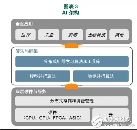 AI是指给机器提供“思考”的能力。通常,AI由3层架构组成:底层硬件与服务、算法与框架、以及垂直应用。
