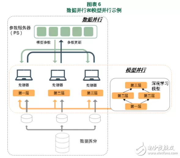 在数据并行性中,数据被放置在并行计算环境中的多个处理器上,不同的机器具有完整的模型副本。每台机器只需获取不同部分的数据并训练数据。其关键在于整合不同机器的结果,达到快速收敛。