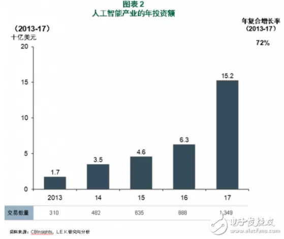 持续的资本投入促进了全球AI产业的发展。 2017年,AI初创公司获得了152亿美元投入,其中近48%是种子或天使轮融资。 此外,谷歌和百度等互联网巨头在2017年在AI领域投入了约300至400亿美元,其中90%用于研发,10%用于收购。战略和财务投资者都在大力寻找AI行业的优质资产。