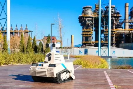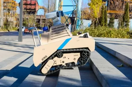 此外,在ATRIS(安巡士)进行智能巡检的过程中,首钢园可以指令机器人通过搭载的高分贝扩音器在巡逻现场进行移动式循环播报,达到政策宣讲、实时公共信息通报的效果。同时,通过无线音频传输系统,指挥中心也可以实现与巡逻现场人员进行实时对讲。ATRIS(安巡士)还搭载了“SOS”紧急呼叫按钮,在紧急情况下,按下该按钮后,机器人将自动拨通紧急电话,实现巡逻现场与首钢园安保中心的信息联动。
