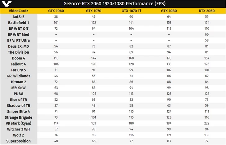 英伟达RTX 2060游戏性能曝光 远超GTX 1060