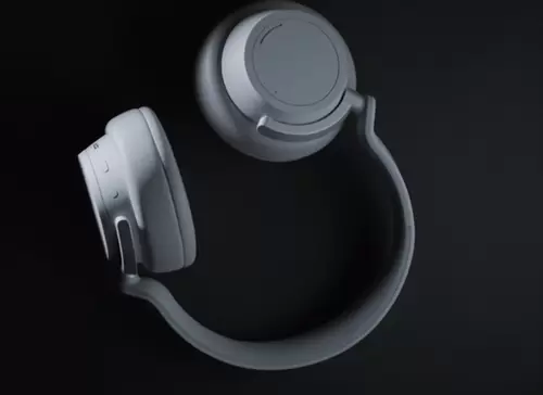 Surface Headphones无线耳机采用罩耳式设计,支持13个等级的可调节降噪功能。用户可通过转动左耳罩上的拨盘进行降噪等级调节,并可通过右耳罩上的拨盘进行音量调节。