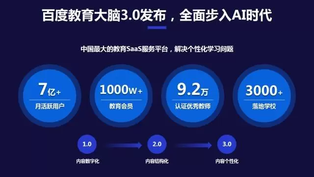 百度教育SaaS服务平台让教育打破时空和资源的限制,跨越收入和阶层的差距,使教育资源更加公平化。此外,百度智慧课堂作为百度教育SaaS面向行业端的产品,目前也已落地数千家学校。以前传统教育都以黑板、粉笔作为媒介,现在都可以转移到线上来,可能未来的教育方式就是学生每人手里一块平板,上课都是线上进行,并且不去学校也可以学;或者是一个三维立体的空间结构,学生可以随意改变数据得出新的结果,比传统教育更形象。传统教育借助人工智能实现飞跃,教育再出发!
