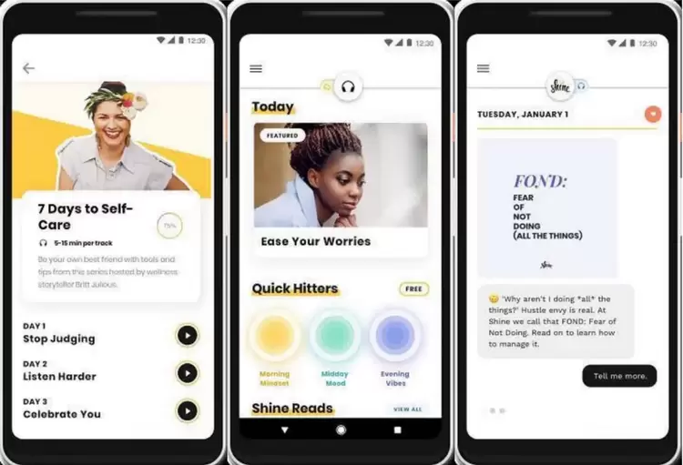 今天,Shine的重点是个人成长,激励信息和其他自我改进主题,这些主题通过文本和音频传递。通过简短的音频,用户可以在许多方面获得帮助,包括生产力,正念,专注,压力和焦虑,倦怠,接受,在线约会的自我保健,创造力,宽恕,工作挫折等等。