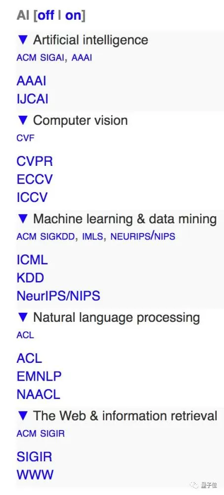 CSRankings分别对这5个子类进行了更细致的排名,每个子排名均以此领域顶会的接收情况为依据。
