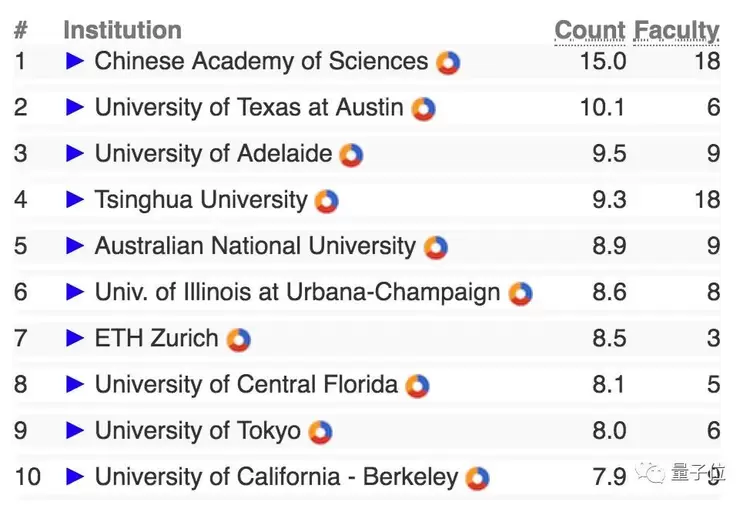 在“计算机视觉”子类中,TOP 10中2家中国高校上榜,中科院全球第一: