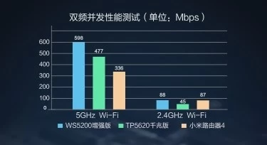 那么,自研凌霄芯片是否真如手机界的“麒麟980”那般性能强大?答案是肯定的,根据华为官方数据显示,在凌霄双核芯片的加持下,增强版双频Wi-Fi性能均得到大幅增强,其中2.4GHz Wi-Fi相比前代提升60%,5GHz Wi-Fi相比前代提升25%。除了与前代产品的对比外,增强版与主要竞品TP-Link 5620千兆版、小米路由4对比,在双频Wi-Fi并发性能和穿墙性能方面均展现出明显优势,这也进一步彰显出了凌霄芯片的独特价值。
