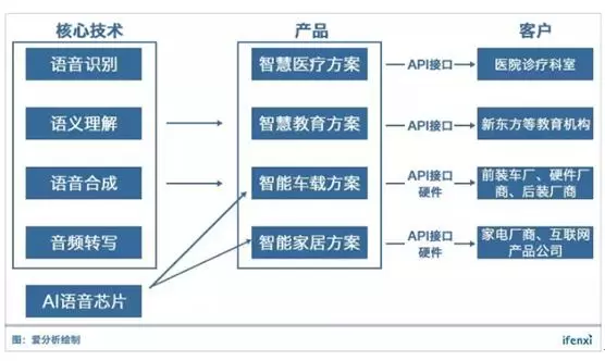 基于语音识别、语义理解等技术,云知声建立“云端芯”产品化战略,并自研开放平台,基于平台向上延伸到医疗、家居、教育、车载领域,向下研发了专有AI芯片。