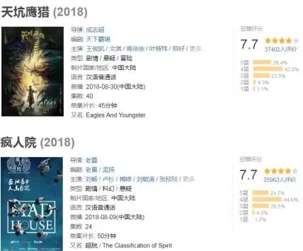 优酷在话题度上似乎比不上腾讯视频和爱奇艺,但最终表现在数据上的结果显示,认真搞创新用户还是买单。“这就是”系列三档节目在关注度和口碑上都算得上行业高水准,对平台和行业来讲都具有标杆意义,三档节目也都在豆瓣年度口碑榜单中名列前茅。剧集方面,《镇魂》的效应一直延续至今,此外《北京/上海女子图鉴》《天坑鹰猎》《疯人院》等都是对类型剧的有效尝试,口碑在网剧中也称得上优秀。
