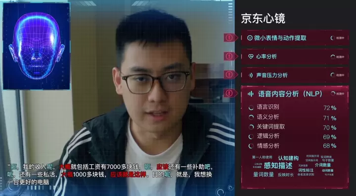 京东心镜通于外在,深入人心,所以才叫“心镜”。其实,“京东心镜”不仅可以用于信贷风控领域,还可以用于安防、员工情绪管理和招聘等领域。