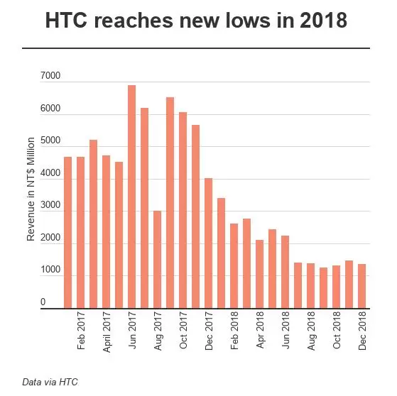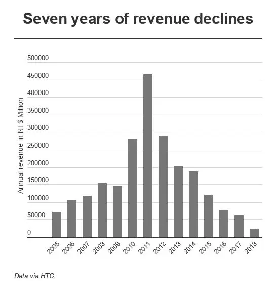 这家台湾智能手机公司以11亿美元的价格将部分业务转移到谷歌,并转向VR,在2018年解雇了更多的员工,并且是有史以来最糟糕的销售年度。