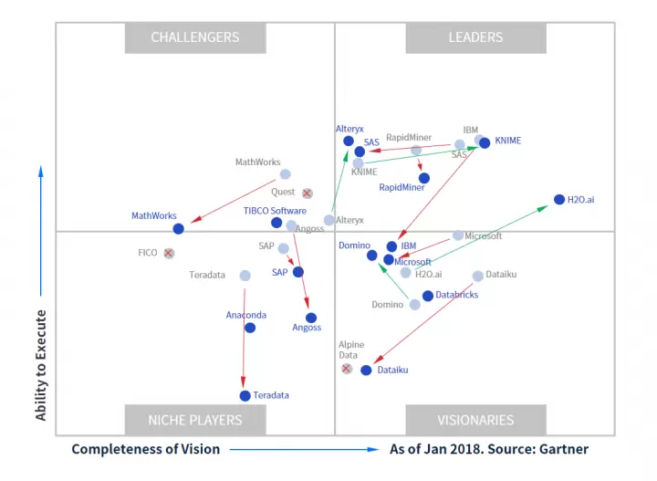 目前,依然在LEADERS象限里的美国的商业分析与商业智能软件公司SAS,年营收35亿美金,公司估值达600亿美金,是全球规模最大的未上市软件公司。可以预见,在这个新兴数据科学平台取代传统企业软件的过程中,将会诞生出千亿规模的新生代企业。
