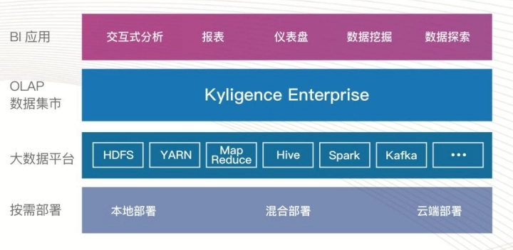 同时,在开源Apache Kylin核心功能之外,对企业用户所关注的实施效率、安全控制、性能优化、自助式敏捷BI、系统监控和管理等方面进行了全面创新和增强。