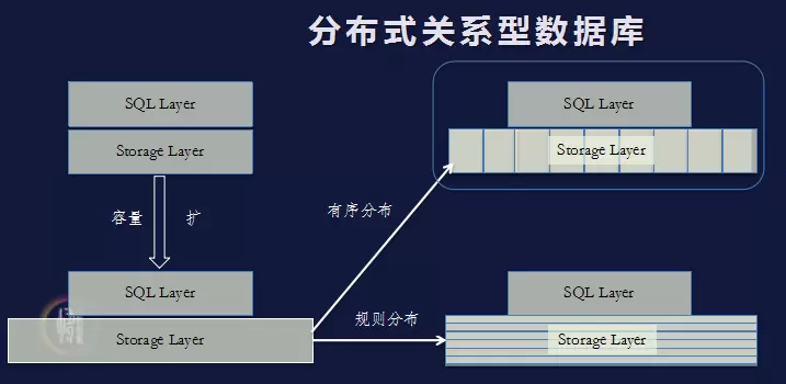 传统的分布式数据库下,数据库可以简单抽象两层,第一层是SQL层,第二层是Storage,SQL层的典型实现是基于分布式存储,这种方案可以兼容各种协议,无限扩容,不存在分布式事务和分布式Join问题,但其缺点也很明显,SQL层存在多节点缓存一致性和分布式锁的问题;Storage层最典型的实现是基于Sharding架构,该架构下也可以进行无限扩容,但协议无法100%兼容,存在分布式事务和分布式Join难题。