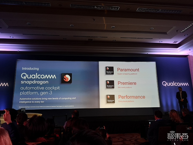 今年高通CES展前发布会的主题是汽车出行,现场,高通产品管理高级副总裁Nakul Duggal推出了第三代骁龙智能座舱芯片平台,包括入门级、中级、高级三款产品。该平台搭载高通新一代AI引擎、搭载Hexagon DSP、第四代Kryo CPU、Spectra ISP、以及第六代Adreno GPU。