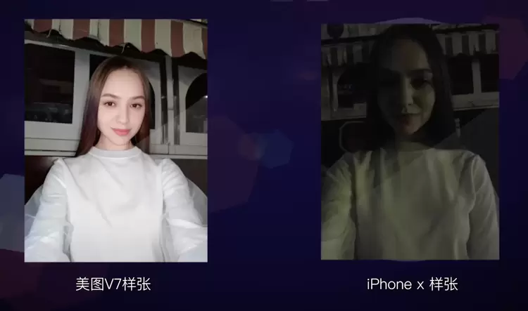 同时,基于美图公司长期以来积累的图像处理技术,以及得益于前置三摄及美图独家算法,美图V7可通过AI在黑暗中捕捉人脸信息,再经过一系列的细节重构、精细化美颜、光线优化等,夜间美颜效果得到更大提升,即使再黑甚至无光的环境都能拍出高清、光亮、美丽的完美照片,实现真正的AI夜间拍摄——无光也能拍大片。