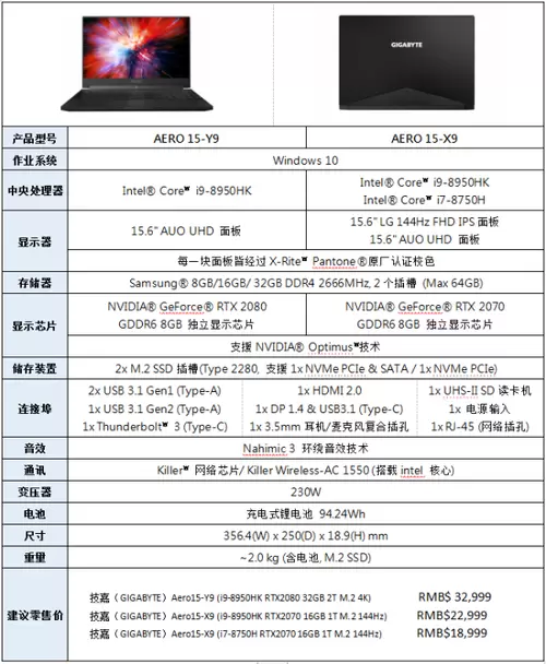 技嘉笔电明星商品AERO 15推出至今广受好评,效能与便携性满足专业工作需求,荣获权威媒体「最佳轻薄电竞笔电」评选第一。2019 CES发布全新搭载RTX 20系列独显版本,透过NVIDIA全新实时光线追踪技术,游戏效能大幅提升;AERO 15更获微软青睐,成为全球第一台搭载Microsoft Azure AI人工智能的效能笔电,透过Microsoft® Azure云端运算及学习,判断使用者正在执行的程序特性,透过动态调整中央处理器(CPU)以及图形处理器(GPU)的瓦耗,让使用者得到更高的游戏帧数或更短的影音处理时间,不论游戏、工作,随时随地释放最佳效能。