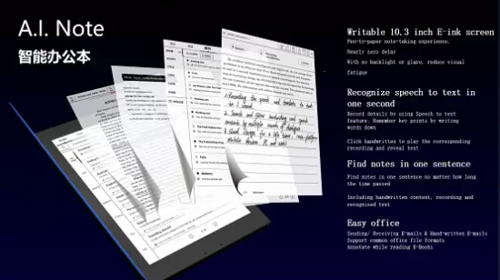 翻译:智能办公本用于日常的记录和转写。该系列可以满足多种场景,设备和格式的转录需求,它能够大大减少用户的工作量。