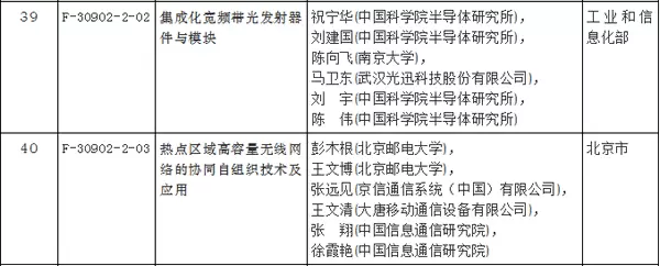 在“集成化宽频带光发射器件与模块”项目中,主要完成人就包括光迅科技的马卫东;在“热点区域高容量无线网络的协同自组织技术及应用”项目中,主要完成人中有来自京信通信的张远见以及大唐移动的王文清;“长飞光纤光缆技术创新工程”更是由长飞主导完成。另外一个与通信行业强相关的项目则是工信部提名的“毫米波与太赫兹(50GHz~500GHz)测量系统”,该项目由中国电子科技集团的41所与13所合力完成。