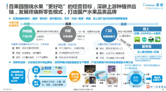 从易观报告的整体行业分析和其对百果园的重点剖析,可以看到百果园凭借远超水果零售行业整体水平的种植端产品开发、流通端的仓储配送、渠道端的直营加盟模式,以及其线上线下一体化、无人售货领域的探索程度,百果园已经成为水果新零售领域的绝对领跑者。