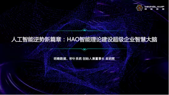 明略数据、秒针系统创始人兼董事长吴明辉出席本次大会并发表了《人工智能逆势新篇章:HAO智能理论建设超级企业智慧大脑》主题演讲。