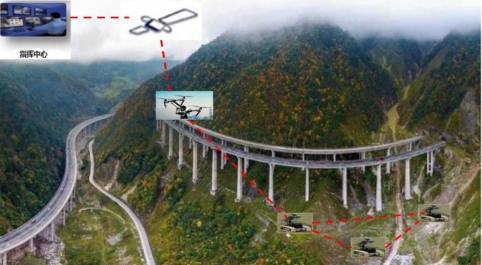 机器人基站与无人机基站通信——距离可达2.5公里,采用高性能单频无线自组网技术,满足无人机和机器人临时编队执行指令需求。