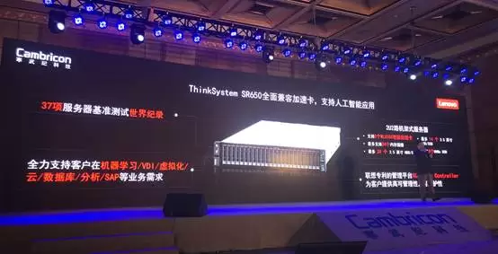 早在2017年8月联想创投就投资了寒武纪。同年11月,在寒武纪新一代智能处理器发布会上,联想集团就对外透露过,将与寒武纪共同开发人工智能服务器产品。时隔不到半年时间,双方合作的新品正式面世。据了解,全新的联想服务器平台ThinkSystem SR650为2U2路机架式规格,支持两个MLU100智能处理卡,已打破了37项服务器基准测试的世界纪录,并可全面支持客户在机器学习、VDI、虚拟化、云、数据库、SAP等业务需求。